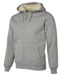 65%Polyester 35%Cotton jersey Bonded with 100% polyester shepherd fleece for comfort,430gsm bonded Jersey with shepherd fleece,Contrast shepherd fleece lining,2x2 rib sleeve cuffs and bottom hem with elastane,Full zip opening,Kangaroo pockets,Adjustable Hood drawcord,Set-in sleeves